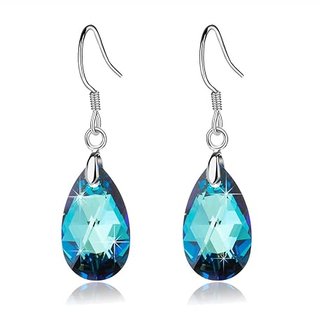 Teardrop Swarovski Crystal Drop Dangle Earrings for Women 925 Sterling Silver Hook Hypoallergenic Earrings