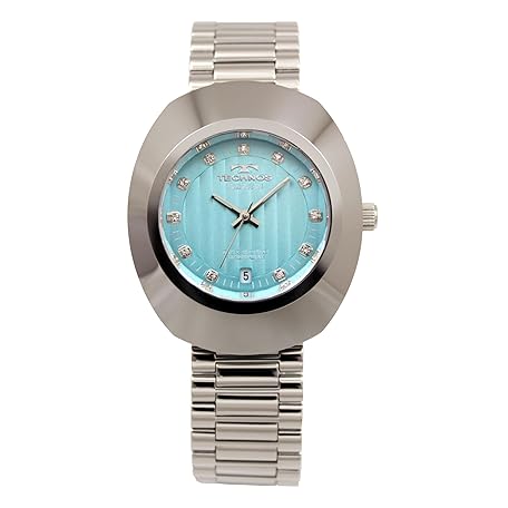 TECHNOS(テクノス) T9C12SI Men's Tungsten Date Wristwatch, Silver, blue, Bracelet Type
