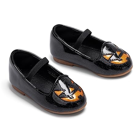 Tegeek グリッターパンプキン ハロウィン 限定版 ガールズシューズ - 簡単装着 プリンセスフラット, Tf506-ミッドナイトパンプキン, 5 Toddler