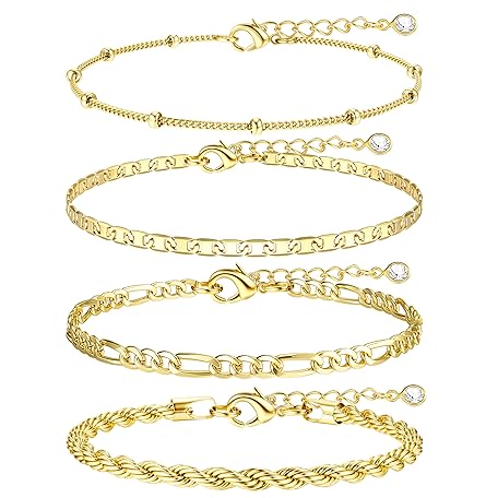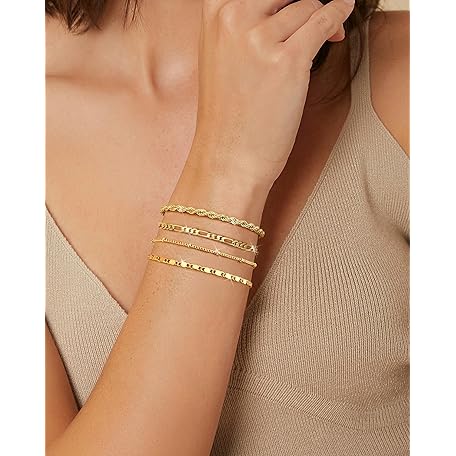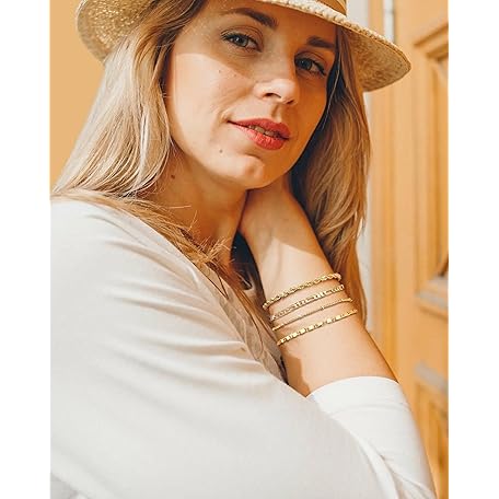 TEN MIRO 16Kゴールドブレスレット 女性用 防水 上品なレディース ゴールドブレスレット スタック 変色しない スタックチェーンリンクブレスレット ロープ テニス サテライト ビーズ ボール ブレスレット ジュエリーギフト