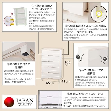 Thông tin sản phẩm Tenma FE6505 Fits Plus Easy 5-Tier Chest Drawer, Easy to Use, Fits in Room Easily, Made in Japan, Pre-assembled, Patented Design, Drawer Lock and Legs Included, Wooden Tabletop, Easy to Match, Storage