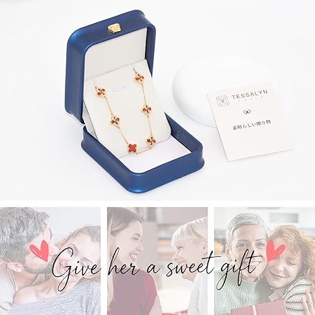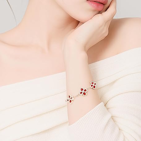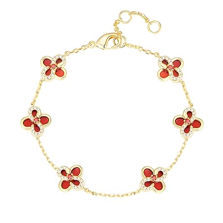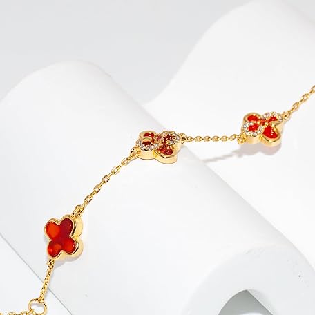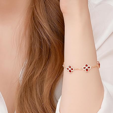 Tessalyn Four Leaf Clover Bracelet for Women, 18K Gold Plated Ruby Clover Lucky Bracelet, Adjustable Clover Chain Jewelry Gift, 7.87in, Copper, No Gems