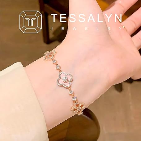 Thông tin sản phẩm Tessalyn Women's Four Leaf Clover Bracelet Studded with Cubic Zirconia, 18K Gold Lucky Four Leaf Clover Bracelet, Elegant Chain, Luxury and Refined, Hand Decorated by a Few of Women