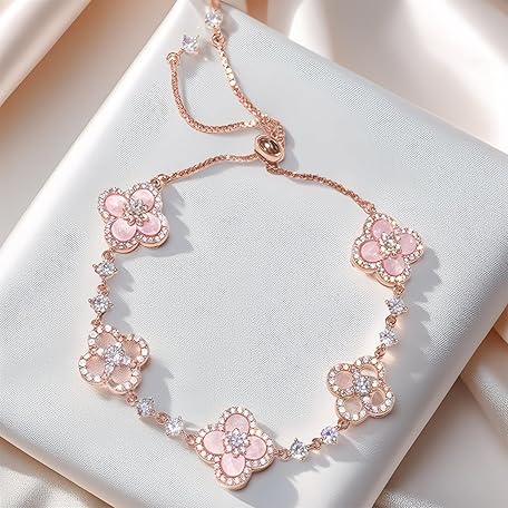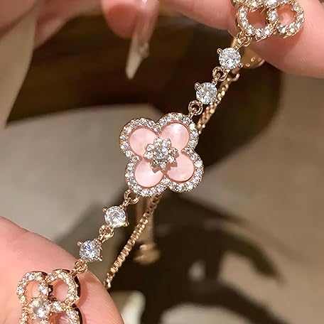 Sản phẩm Tessalyn Women's Four Leaf Clover Bracelet Studded with Cubic Zirconia, 18K Gold Lucky Four Leaf Clover Bracelet, Elegant Chain, Luxury and Refined, Hand Decorated by a Few of Women đang được bán với giá ưu đãi là $65.0185 tại nước Nhật.