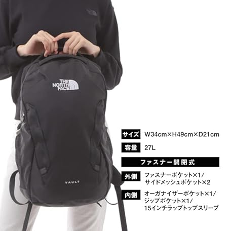 Thông tin sản phẩm The North Face NF0A3VY2 JK3 A4 Backpack, Vault 8.1 gal (27 L) Black, Men's, Women's, Compatible with Parallel Import, TNF-BLACK, 34 cm x 49 cm x 21 cm