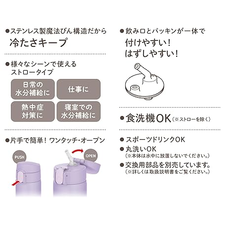 Thông tin sản phẩm Thermos FKA-500 LV Vacuum Insulated Straw Bottle, 18.1 fl oz (510 ml), Lavender, For Cold Retention
