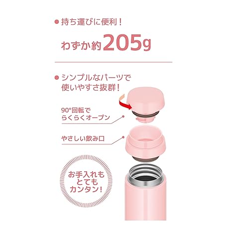• Thermos JOR-500 SPK Water Bottle, Vacuum Insulated Portable Mug, 16.9 fl oz (500 ml), Shell Pink, Dishwasher Safe Model