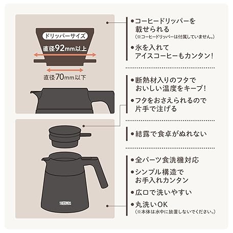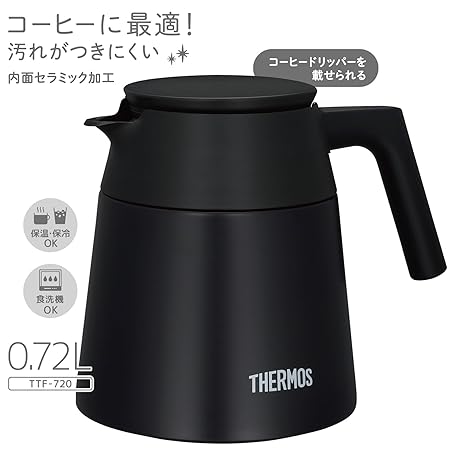 Thông tin sản phẩm Thermos TTF-720 BK Vacuum Insulated Coffee Server, 24.3 fl oz (720 ml), Black, All Parts Dishwasher Safe, Coffee Dripper Compatible, Magic Bottle Structure, Hot and Cold Retention