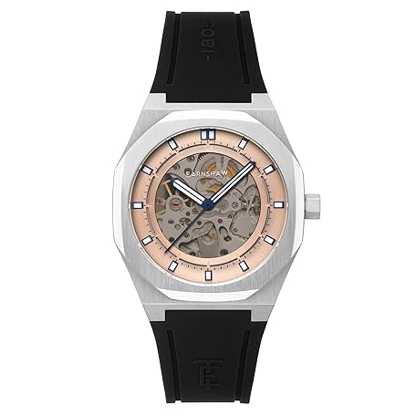 Thomas Earnshaw メンズ 42mm ディスカバリー ドレイク スケルトン 自動巻き腕時計 シリコンストラップ付き ES-8295, シャンパンシルバー。, Drake Skeleton Automatic。