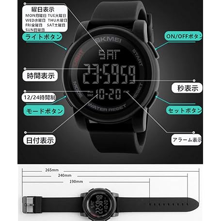 Thông tin sản phẩm Timever Digital Watch, Waterproof, Men's, Sports Watch, Multi-functional, Stopwatch, Alarm, Outdoors, LED Watch, Large Digits, Easy to Read Watch, Japanese Instruction Manual Included (English Language Not Guaranteed), black1