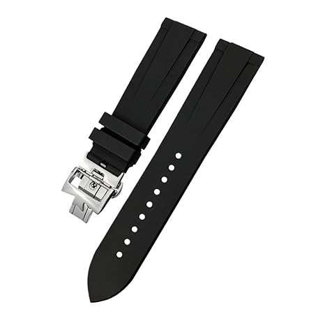 [TIOYW] 20 ミリメートル 21 ミリメートル 22 ミリメートルフッ素ゴム時計バンドヴァシュロンコンスタンタン赤青黒防水ソフト時計ストラップブレスレット(Black Silver,20mm)