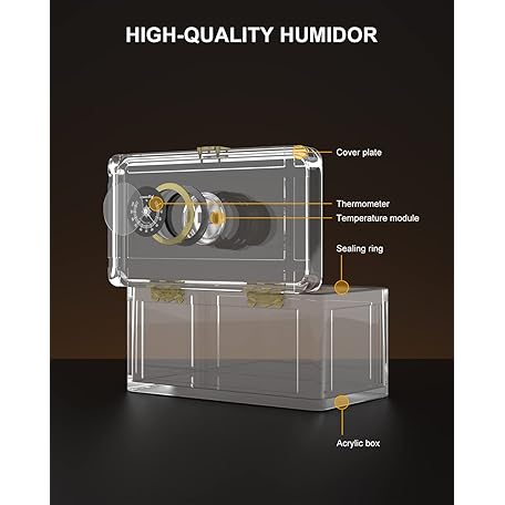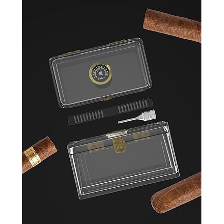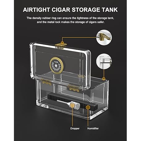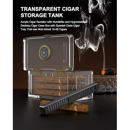 Thông tin sản phẩm TISFA Acrylic Cigar Humidor with Humidifier and Hygrometer, Tabletop Cigar Case Box, Holds 15-20 Cigars (S)