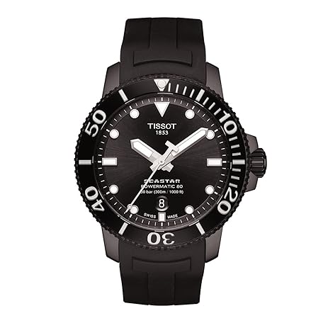 Thông tin sản phẩm Tissot T1204073705100 SeaStar 1000 Automatic Rubber Strap Men's Black Dial Watch, black/black/rubber, Watch Powermatic 80 30 ATM Water Resistant See-Through Case Back
