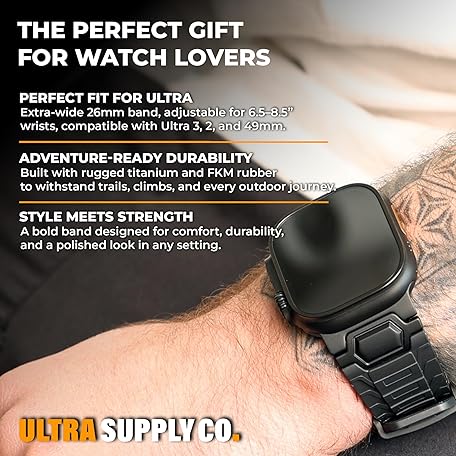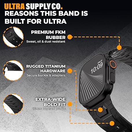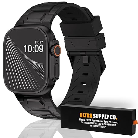 • Titan FKM Premium Sport Band for Apple Watch Ultra 3 Ultra 2 Ultra 49mm, Black / Black, One Size