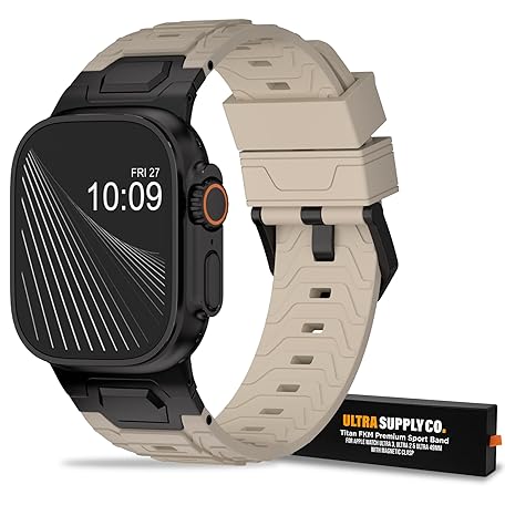 • Titan FKM Premium Sport Band for Apple Watch Ultra 3 Ultra 2 Ultra 49mm, Black/Starlight , One Size
