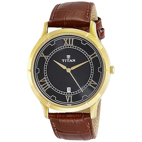 • Titan Karishma Black Dial Brown Leather Strap Analog Watch for Men