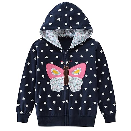 • Tkria ガールズ ジップアップ パーカー スウェットシャツ 幼児 ハート ジャケット 冬 長袖 フード付きシャツ ポロバートップ 秋 アウター 2-6T
