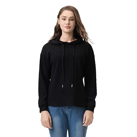 Tmeefee 女性用ワッフルパーカー:ニット 長袖 ドローストリング フード付き プルオーバー レディース, ブラック, XX-Large