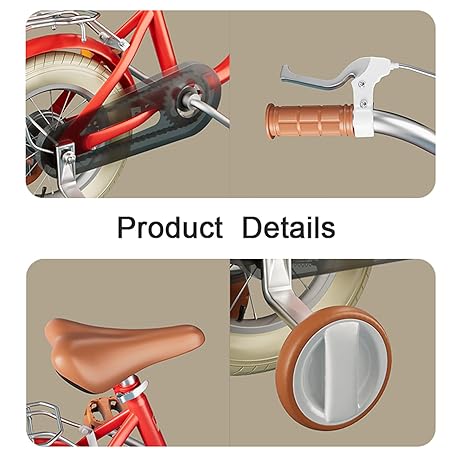 • Toddler & Kids Bike, 16" Kids Bike (5-7 Years Old Girls), Retro Bike with Training Wheels, Front and Rear Dual Brakes, Adjustable Handlebar and Seat