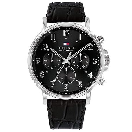 Tommy Hilfiger 1710381 Analog Multi-Function Men's Black Silver Business Casual Watch