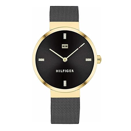 Tommy Hilfiger 1782216 Women's Boys Size Tommy Hilfiger Gold Black Mesh Stainless Steel Watch, gold black, Bracelet Type