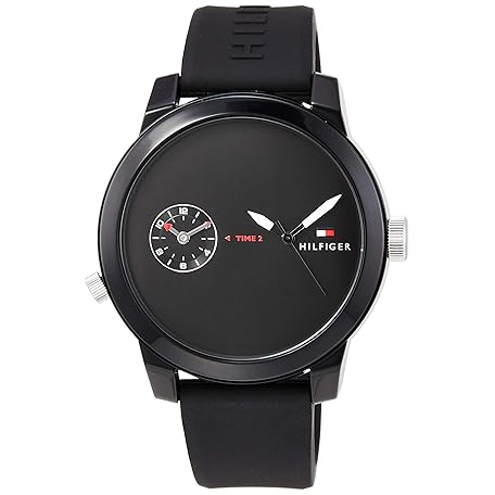 Tommy Hilfiger 1791326 Men's Wristwatch, DENIM Dual Time, Black, Rubber Strap, Quartz, Dial color - black, Watch Quartz, Rubber, Plastic