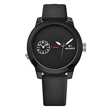 Tommy Hilfiger 1791326 Unisex Watch, Convenient for Travel, Dual Time, Black, Rubber