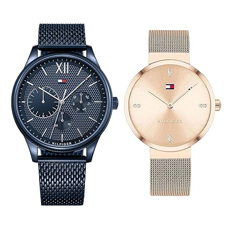 Tommy Hilfiger 17914211782218 Pair Watch, Storage Box, Men's, Women's, Navy, Pink Gold, Mesh, Stainless Steel Bracelet, Wristwatch, Bracelet Type