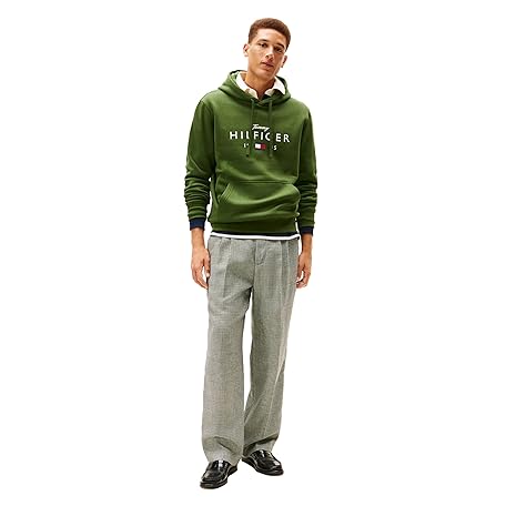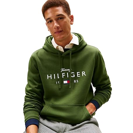 • Tommy Hilfiger Men's Medium Weight Cotton Hoodie Sweatshirt with Printed Logo and Drawstring