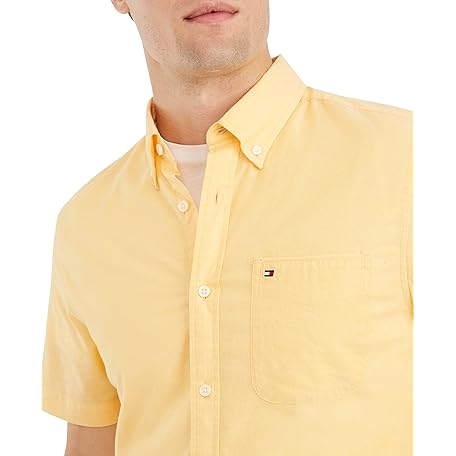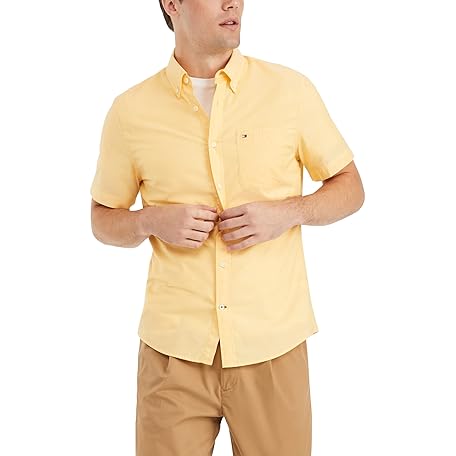 Thông tin sản phẩm Tommy Hilfiger Men's Short Sleeve Casual Button-Down Shirt in Custom Fit, Warm Yellow, XL