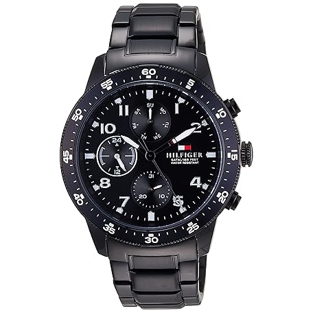 Tommy Hilfiger Men's Wristwatch, Black Dial, Stainless Steel, Quartz, Black, Bracelet Type