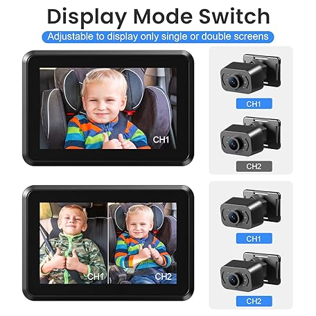 Tomoro Baby Stroller Mirror with 2 HD Dual Channel Infrared Night Vision Cameras, 5 Minutes Easy Installation, Stroller Mirror, Clear Car Baby Camera for Backseat ACZ421