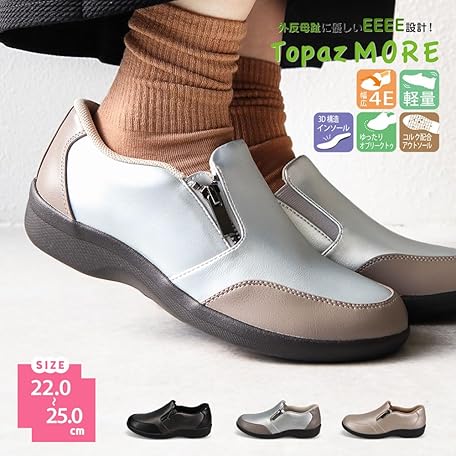 [セレブル] [トパーズモア] Topaz MORE コンフォートシューズ レディース 4e 幅広 スリッポン ファスナー 1415