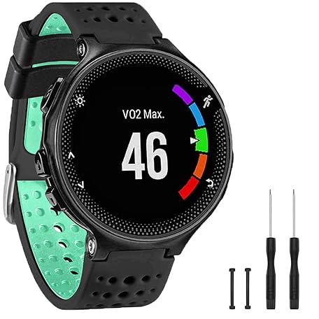 • TopPerfekt バンド Garmin Forerunner 235対応 ソフトシリコン交換用時計バンド ストラップバンド 220/230/235/620/630/735XT/235 Lite スマートウォッチ用 男女兼用 (ブラック-ミントグリーン)