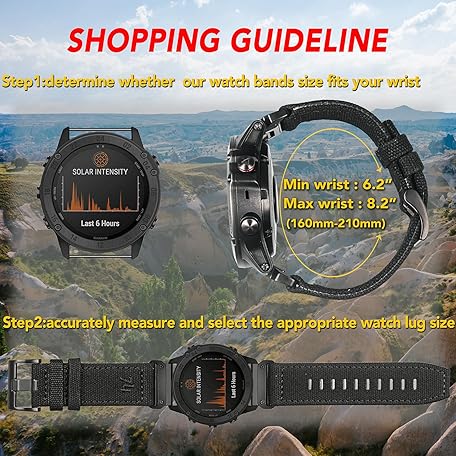• Torbollo Garmin Belt Canvas Garmin Band for Fēnix, Instinct, Tactix, Vivoactive/Approach/MARQ/Quatix/D2/Forerunner/Enduro Series Upgraded Connector Garmin Quick Fit ver 20/22/26mm