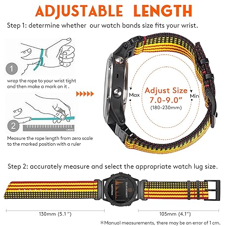 Thông tin sản phẩm Torbollo Garmin Belt Nylon Garmin Band for Fēnix, Instinct, Approach, MARQ, Quatix, D2, Forerunner, Enduro Series, Upgraded Connector Garmin Quick Fit ver 20mm 22mm 26mm