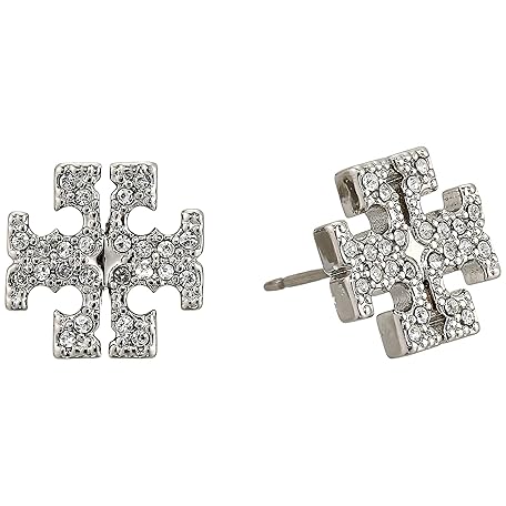 TORY Burch 53423-042 Crystal Logo Earrings, Silver