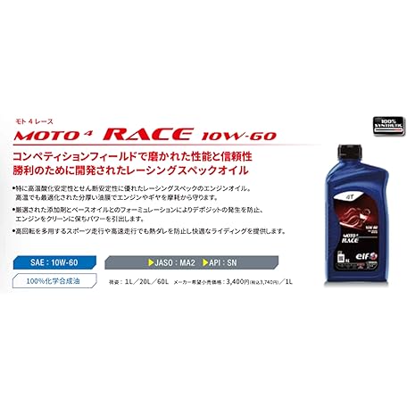 Sản phẩm Total elf(エルフ) バイク用 4st エンジンオイル MOTO RACE (モト レース) 10W-60 全化学合成油 1L 213947 đang được bán với giá ưu đãi là $24.5577 tại nước Nhật.