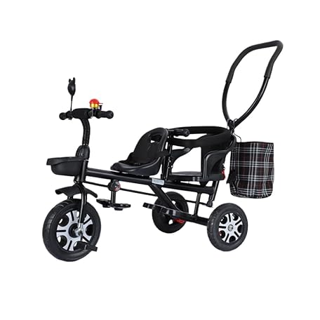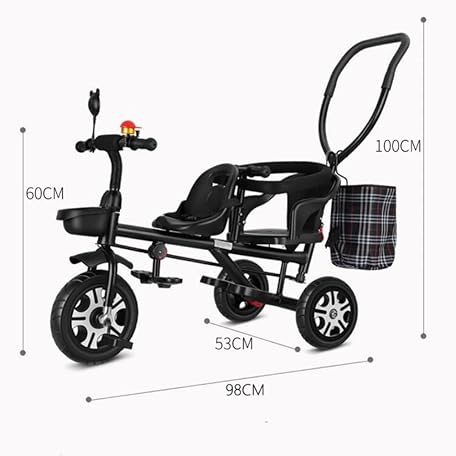 • TPPT Two Seater, Tricycle, Baby Stroller, For Twins, Children, Bicycle, Auxiliary Pole Included, 2 Point Seat Belt, Storage Basket Included, Auxiliary Rod, Can be Removed, Birthday Gift, Outdoor