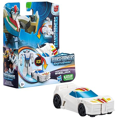 Transformers Toys EarthSpark 1-Step Flip Changer Wheeljack 4-Inch Action Figure, Robot Toys for Ages 6 and Up