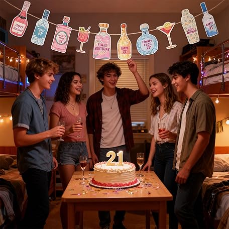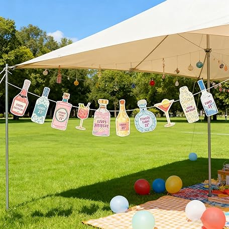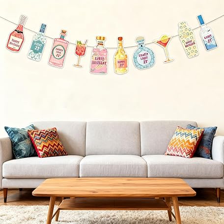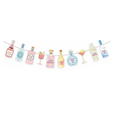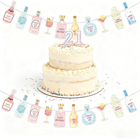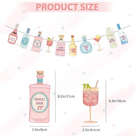 TRBSXRT 21歳の誕生日デコレーション ピンク シャンパン ワインボトル 21歳の誕生日バナー 彼女に フォーエバー 21 パーティー装飾 ハッピー21歳のパーティーデコレーション 女の子向け