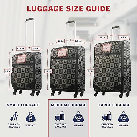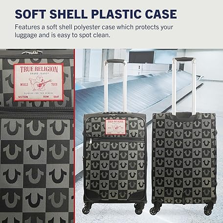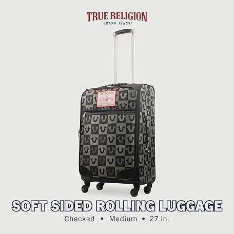 True Religion ローリングラゲッジ、スピナーホイール付きソフトサイドスーツケース付き, ブラック, 27 Inch, True Religion 27インチ ローリングラゲッジ、スピナーホイール付きソフトサイドスーツケース付き