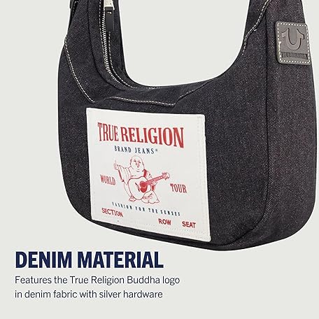 • True Religionレディースショルダーバッグパース、ブッダポケットホーボーハンドバッグ、調節可能なストラップ付き。