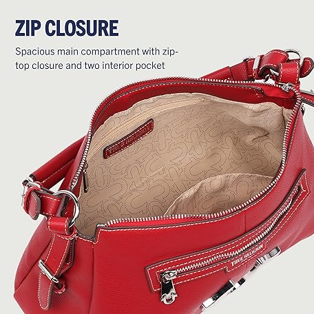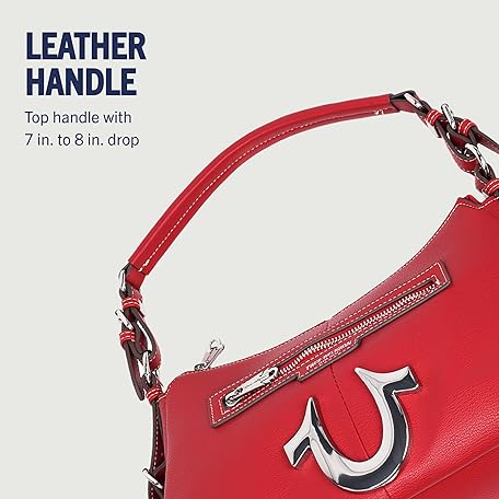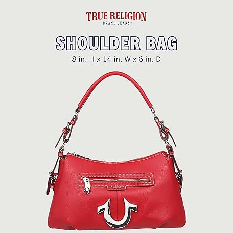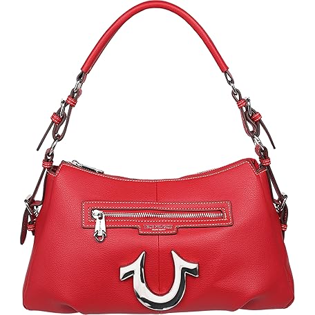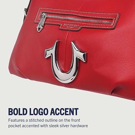 True Religion サッチェルバッグ、女性用クロスボディパース、調節可能なストラップ付き、エブリデイストラクチャードハンドバッグ、レッド