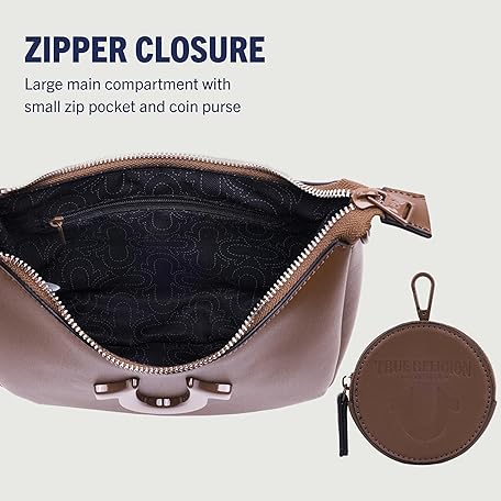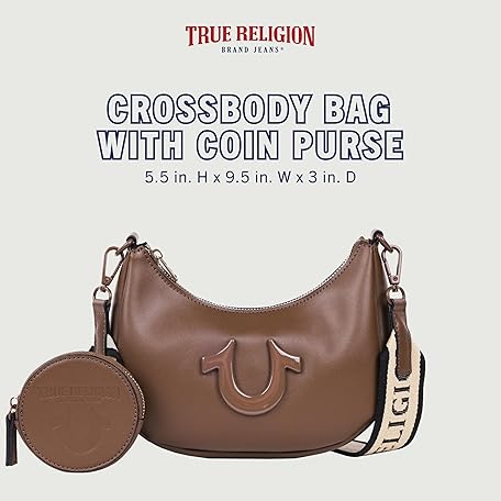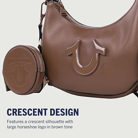• True Religion クレセントホーボーバッグ 蹄鉄ストラップ、女性用デザイナーショルダーパース、ブラウン
