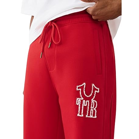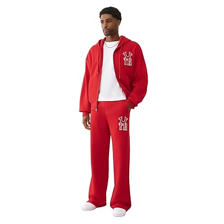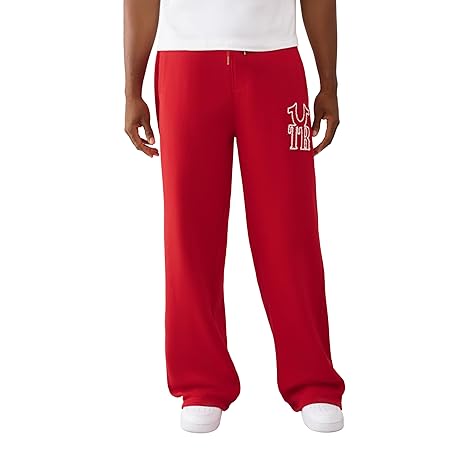 [True Religion] メンズ リブステッチ Dept バギースウェットパンツ – ソフトフィットの快適で暖かいジョガーパンツ, Trv Red, Large