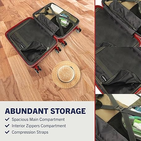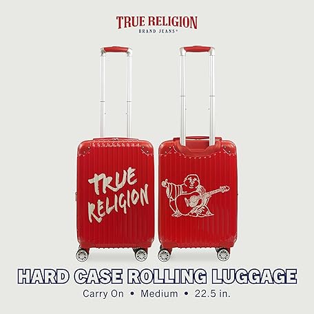• True Religion 機内持ち込み手荷物、スピナーホイール付きハードシェルローリングスーツケース、レッド, レッド, True Religion 機内持ち込み手荷物、スピナーホイール付きハードシェルローリングスーツケース