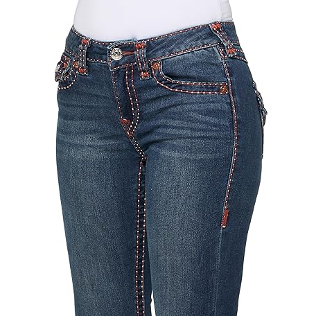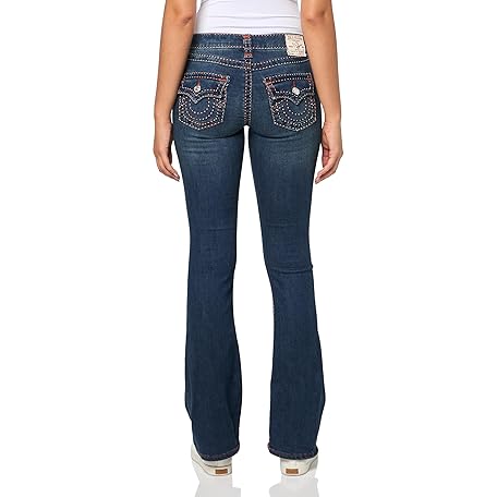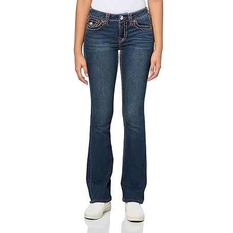 • True Religion Women's Becca Mid Rise Boot Pick Stitch Super T Jeans