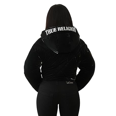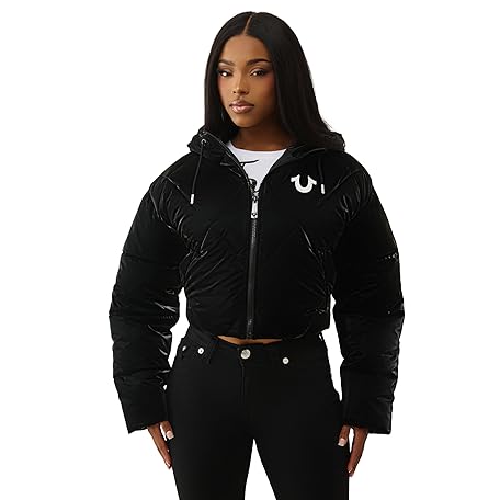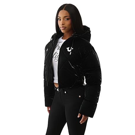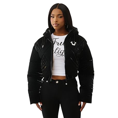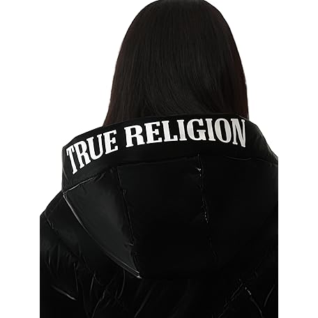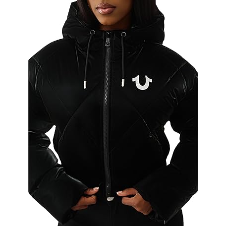 • True Religion Women's High Shine Foil Hooded Puffer Jacket