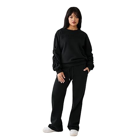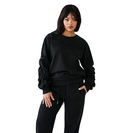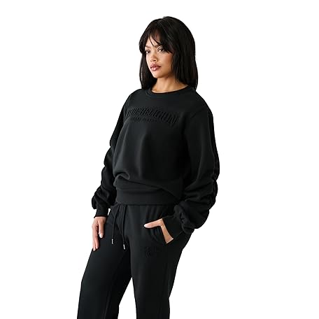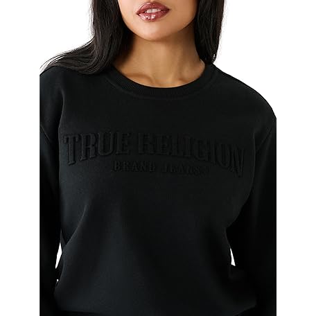 • True Religion Women's Stacked Relaxed Logo Popover Sweatshirt